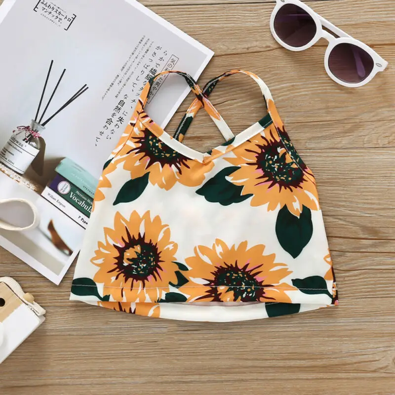 2019 New AU Toddler Kids Baby Girl 6M-4T Clothes Sunflower Sleeveless Vest Tops Shorts Outfits