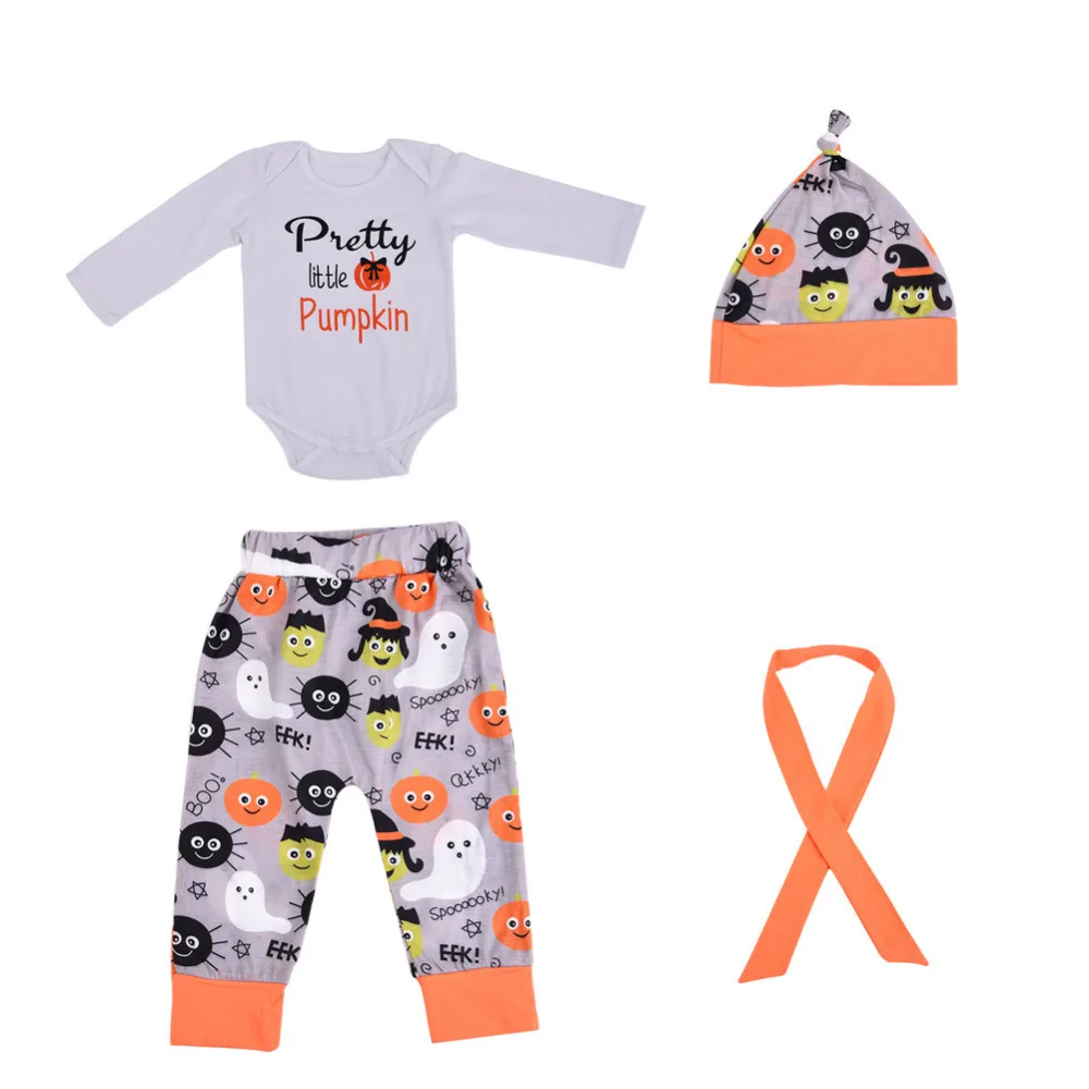 4PCS New Kids Clothing Set Cotton Halloween Baby Boy Girls Comfortable Clothes Casual Suits Long Sl