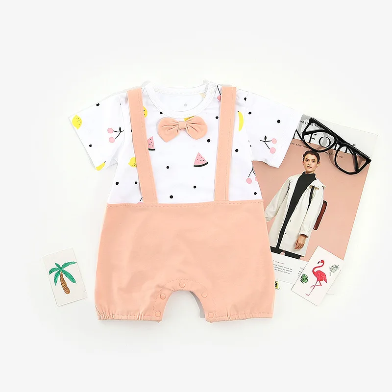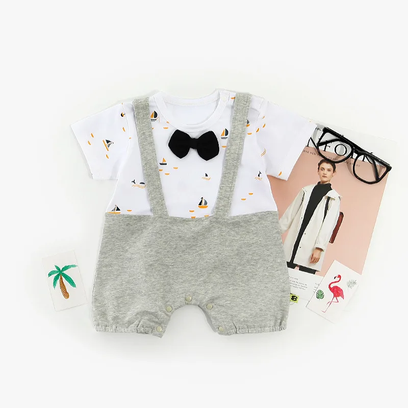 Latest korea cute style bow cotton top quality baby romper suspenders boys jumpsuit
