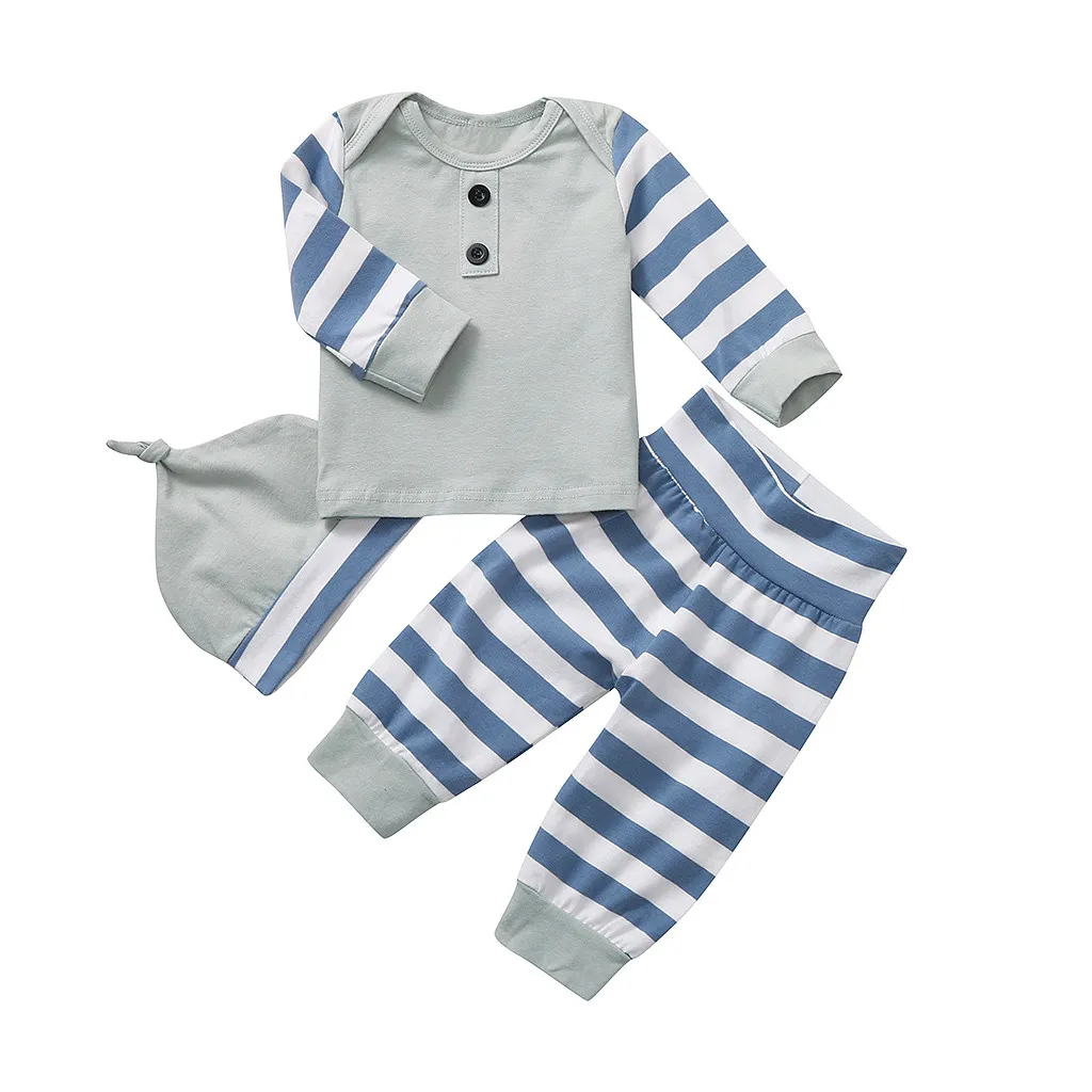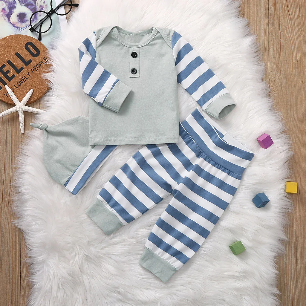 ORIGINAL Baby Girl outfit Newborn Clothes Infant Baby Boys Girls Long Sleeve Shirt Tops+Striped Pants+Hat Ou