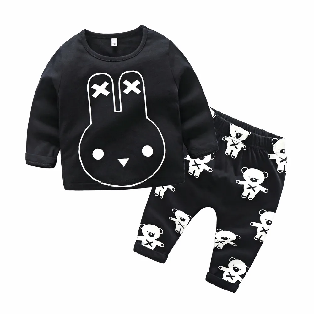 Spring baby boys girls cartoon letter cotton t shirts +pant 2pcs set cute infant homewear fashion k
