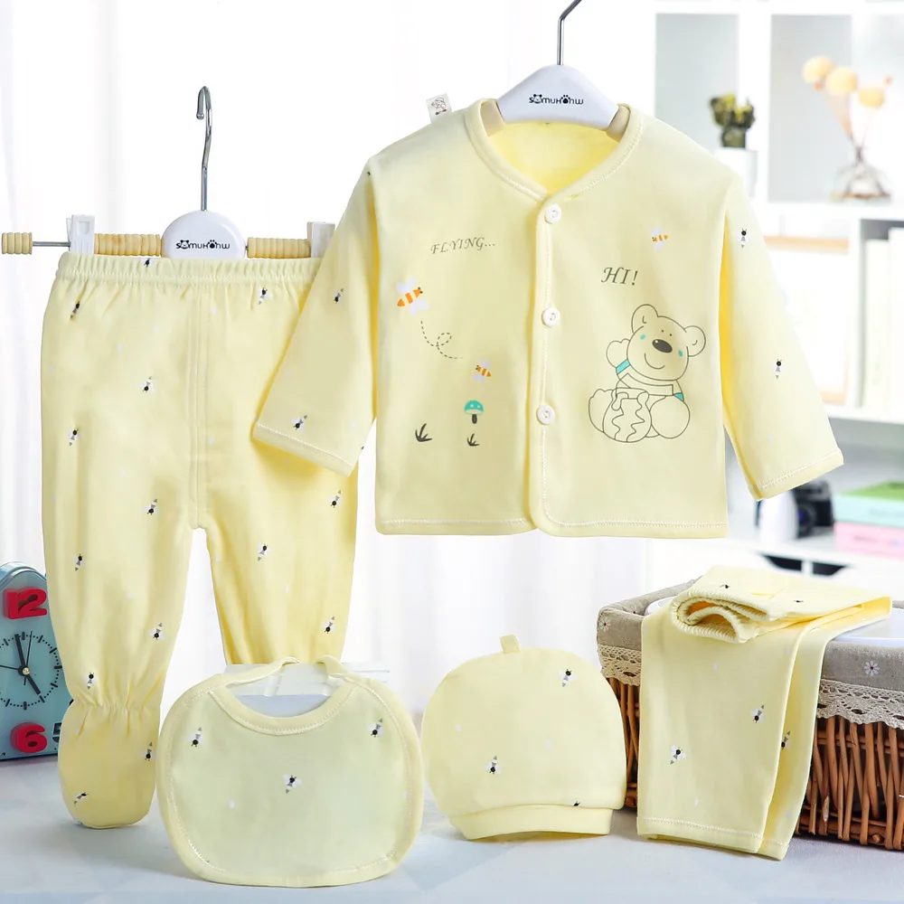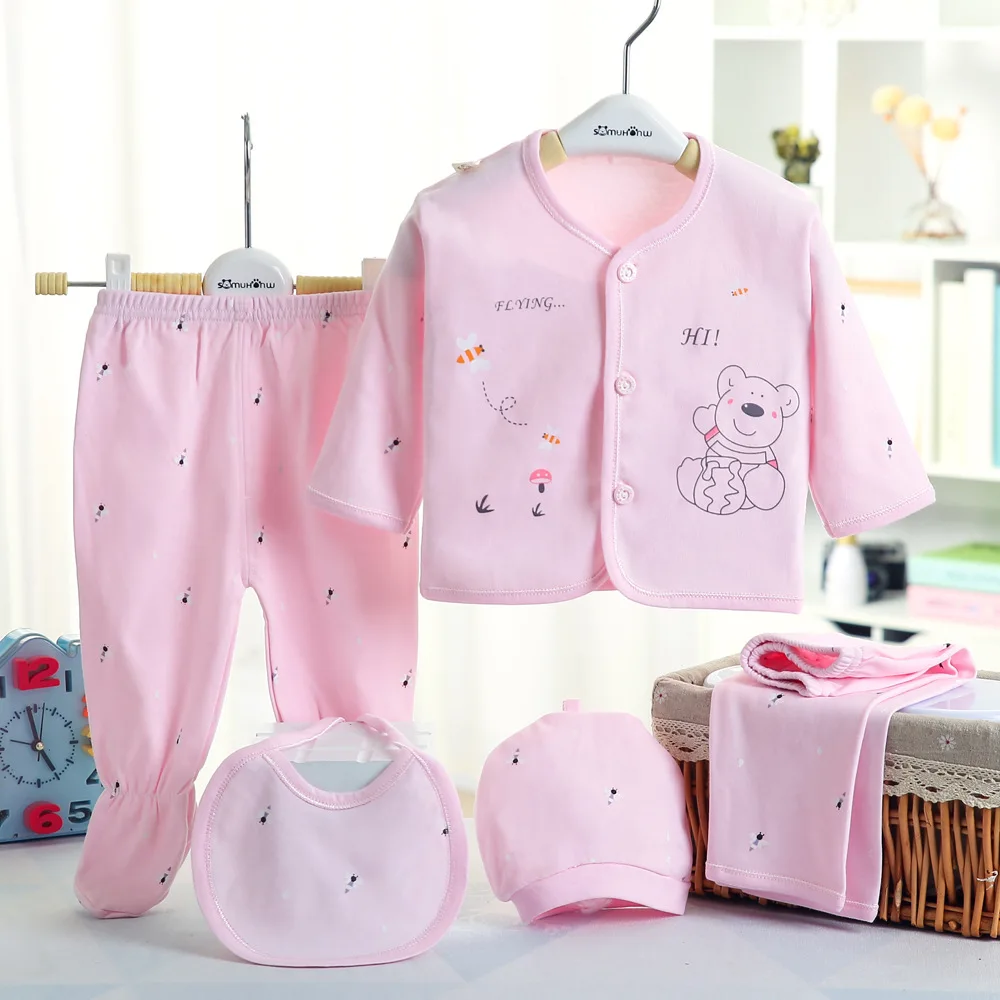 5pcs Newborn Baby Set Boy Clothes Cotton Infant Suit Baby Girl Clothes Outfits Pants Baby Clothing