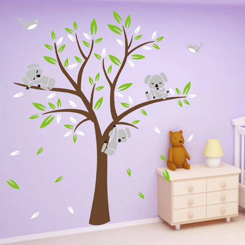 Koala Family on White Tree Branch non-toxic Vinyl Wall Stickers Nursery Decals Art Mural Baby Child