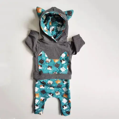 Newborn Baby Boys Girls Kitty Hooded Tops Long Pants Autumn Clothes Outfits Set