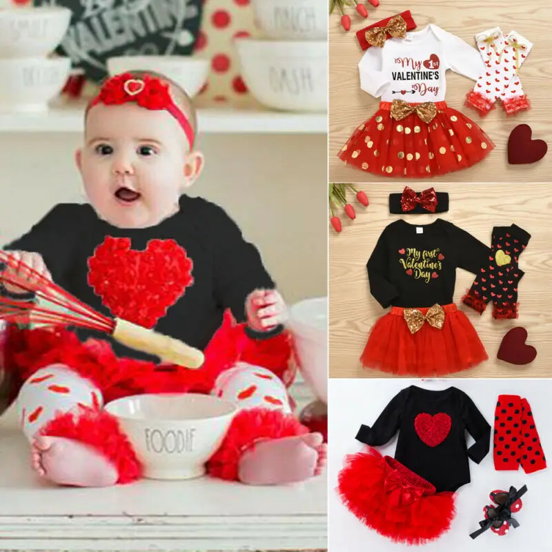 US My 1st Valentine Day Newborn Baby Girl Clothes Romper Bodysuit Tutu Skirt 4Pcs Outfit Set 0-24 m