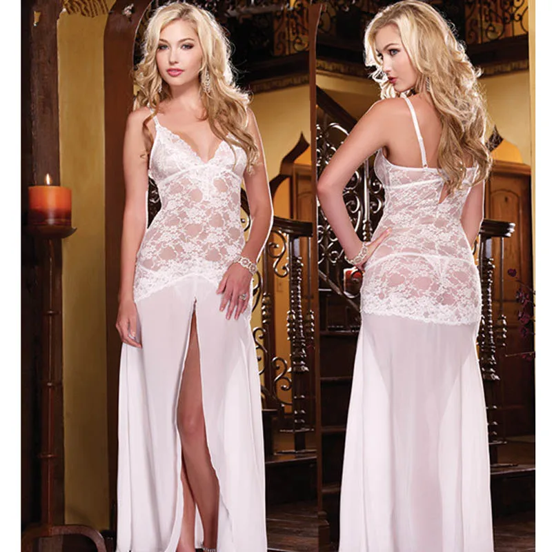 Leechee Q217 Women Sexy Slings Lingerie Lace Embroidered Maxi Dress Hot Pajamas Perspective Underwe